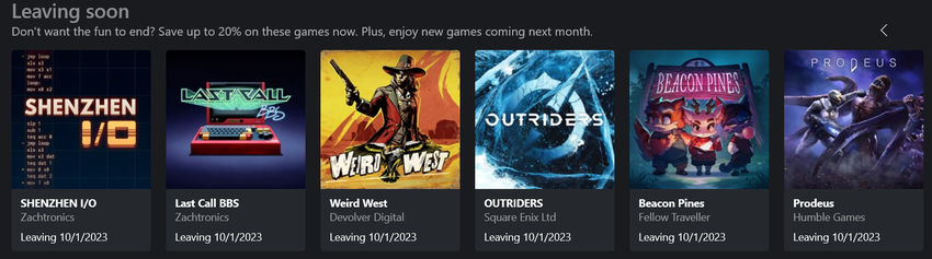 Game Pass heeft de sectie "Leaving Soon" bijgewerkt, waarin 8 games staan die het abonnement op 1 oktober voorgoed zullen verlaten.