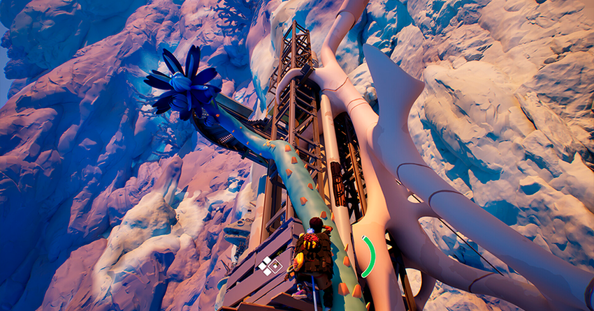En de toren verandert voortdurend. We beginnen aan de voet, waar vooral stenen liggen. Later bevinden we ons op een plek die op een woestijn lijkt. Plotseling worden we meegenomen naar pittoreske grotten die verlicht worden door bioluminescentie. Daarna worden we begroet door de top van een toren bedekt met gras. En dat is nog niet alles wat de spelers in Jusant aan biomen, flora en fauna te wachten staat.
