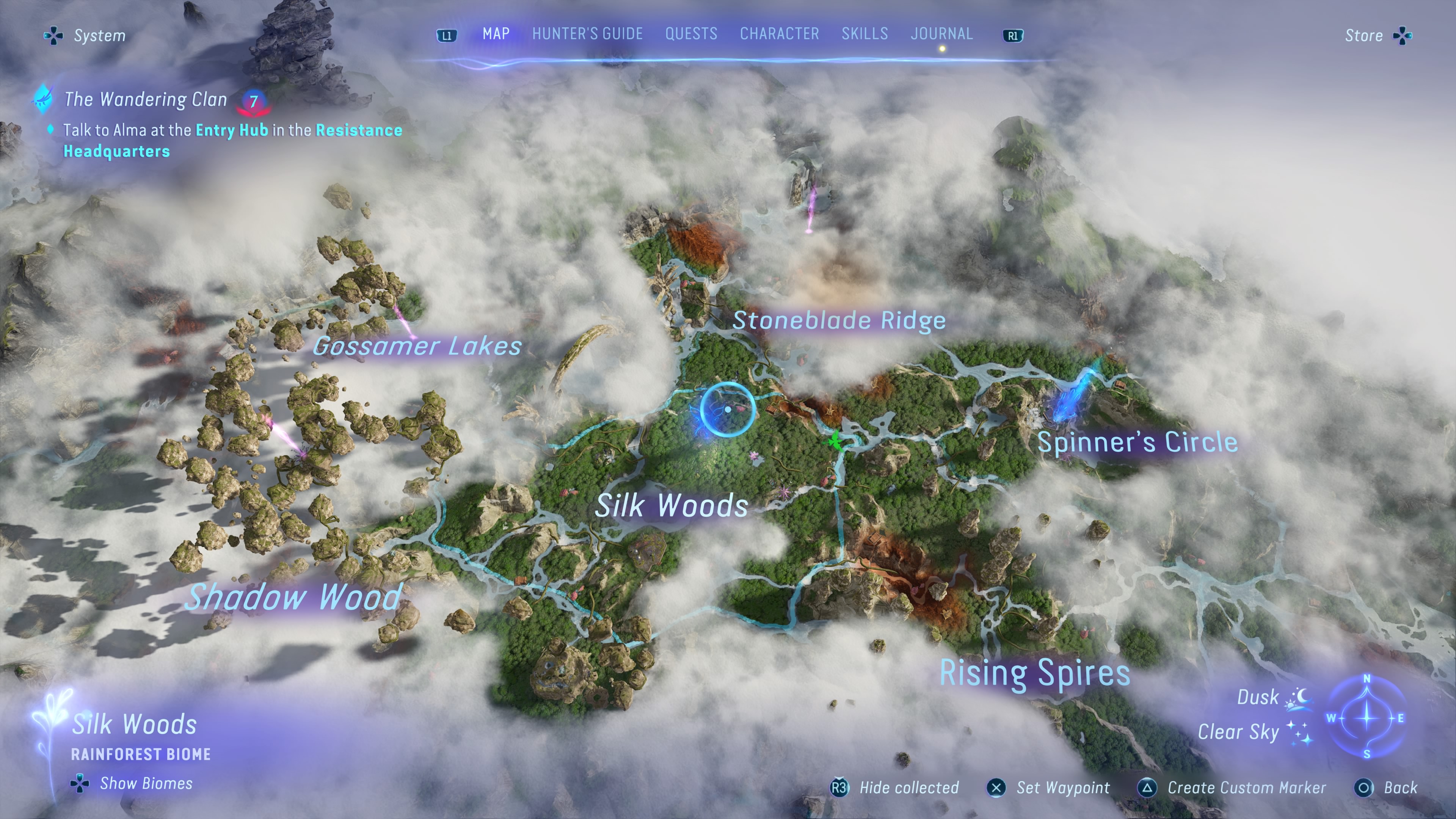 Als we het over de gameplay hebben, hebben we een vrij typische Ubisoft open-wereldgame zoals Far Cry of Assassin's Creed, dus we hebben een enorme kaart met veel points of interest. Het grootste verschil is de grotere nadruk op verticaliteit. Onze hoofdpersoon is een nogal behendige en snelle Na'vi die erg goed is in het beklimmen van rotsen en bomen. De elementen van de omgeving helpen hem daarbij: planten die werken als een trampoline, enorme bladeren die de held katapulteren, lianen om snel in bomen te klimmen en enorme bladeren die helpen om niet dood te gaan als je van grote hoogte valt. Maar zelfs dit is soms niet genoeg. Ik kon bijvoorbeeld pas op de gewenste locatie komen in een extra opdracht nadat ik een Ikran tot mijn beschikking had gekregen. Als je ermee vliegt, kun je niet alleen het landschap bewonderen, maar ben je ook sneller op de gewenste locatie. En voor snelle bewegingen op de grond is er een lokaal analoog van paarden.