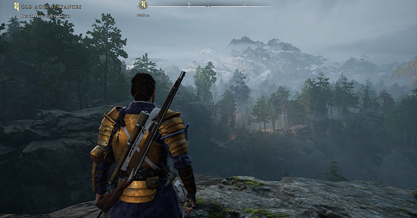 Vergeet niet dat dit een AA-spel is en dat je geen graphics op Cyberpunk-niveau moet verwachten, maar toch vond ik de visuals van het spel mooi. De auteurs hebben gewerkt aan kleine details, zoals natte kleren na regen, voetafdrukken in de modder of gras dat door de wind wordt geslingerd. Ja, we hebben dit allemaal meer dan eens gezien, dus de visuele component trekt vooral de aandacht met iets anders - locaties. Ik ben dol op bossen, bergen en natuur in het algemeen, en daar is genoeg van te zien in het spel. Dus soms vergeet ik tijdens de passage alles en dwaal ik door de regio. Onderweg komen we nederzettingen, meren, bergen, velden na bloedige gevechten, kapotte schepen, verlaten huizen, grotten, watervallen tegen en als je een dicht bos binnengaat, begin je langzaam te lopen en van de natuur te genieten. Dus ja, natuur in games is mijn achilleshiel, en daarom werd ik verliefd op de sfeer van Banishers: Ghosts of New Eden, want naast de schoonheid van de regio wacht je overal mystiek, wat ook een stimulans is om het gebied te verkennen.