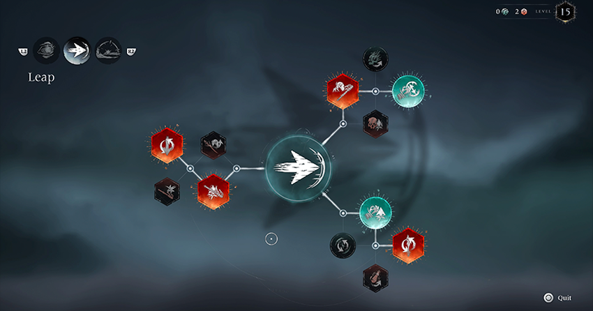 Je kunt ook vaardigheden upgraden voor zowel Red als Anthea. De vaardigheden zijn verdeeld in verschillende secties en elke sectie heeft zijn eigen vertakkingen. Maar je kunt niet twee vaardigheden activeren in dezelfde tak, slechts één. Je moet dus nadenken over welke vaardigheid je meer nodig hebt en welke niet. Het is best een interessant idee, want je kunt niet zomaar gedachteloos nieuwe vaardigheden vrijspelen en dat is het dan. Alles moet vakkundig gecombineerd worden en ik zou dit graag meer zien in games. Ook zijn de meeste vaardigheden echt nuttig, geen opvulling. Bijna alles wat ik activeerde, werd gebruikt tijdens gevechten.