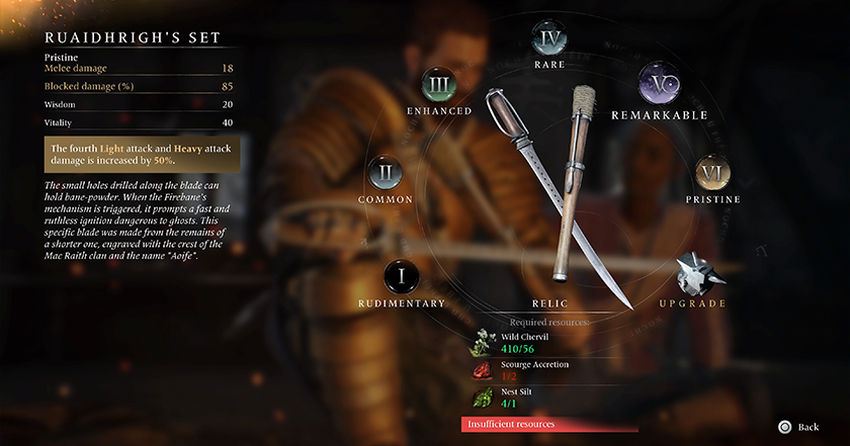 Wat is een rollenspel zonder levelen? Banishers heeft dat dus ook. We kunnen onze items of vaardigheden verbeteren. Dit gebeurt alleen bij speciale kampvuren, waardoor je ook kunt rusten en snel naar een ander kampvuur kunt gaan om tijd te besparen.