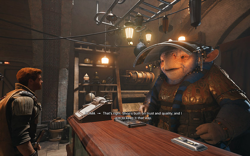 Ook hier is niet alles zo goed als we zouden willen. Heel vaak is er een merkbaar laden van objecten en texturen in het frame (soms zo merkbaar dat het grappig begint te worden). En er zijn ook genoeg niet-kritieke visuele bugs. Soms gaat een zwaard door Cal's pak, soms gaat een voorwerp een eigen leven leiden en begint hij als een gek te knipperen.