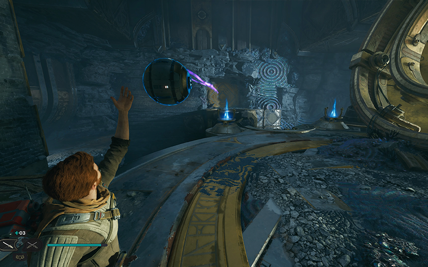 Er zijn ook Jedi Chambers in het spel. Dit zijn precies de optionele puzzels die ik noemde. Je bevindt je in een kleine kamer waar je moet uitzoeken hoe je op een bepaalde plek kunt komen waar je je gezondheid of Kracht kunt verhogen, of een nieuwe vaardigheid kunt krijgen om je personage te verbeteren, en tegelijkertijd verschillende voorwerpen kunt verzamelen.