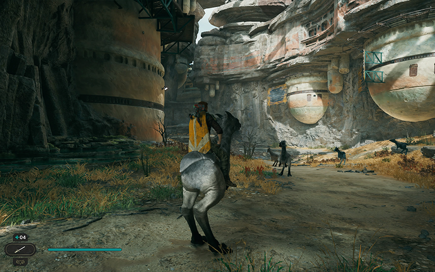 Als je je snel over de grond moet verplaatsen, is er de Nekko, een wezen met twee benen dat snel kan rennen en een sprong kan maken waarmee je hogerop kunt komen. En terwijl Relters zich alleen op speciale plaatsen bevinden, is de Nekko bijna overal op Koboh te vinden. En om hem te berijden hoef je alleen maar op R1 te drukken.