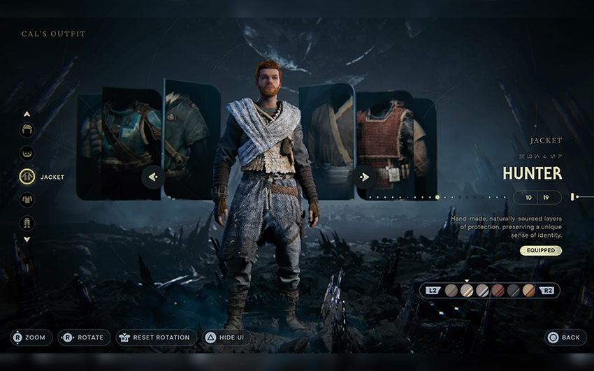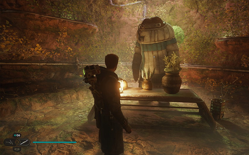 In vergelijking met Fallen Order is de customization uitgebreid. Door de dozen te openen die overal verspreid liggen, kun je nieuwe kostuums voor Cal, kapsels, onderdelen voor het lichtzwaard en de BD-1 assistent-droid openen. Het stimuleert je ook om de wereld te verkennen, want als je de jagerscape al hebt vrijgespeeld, wil je de broek uit de bijbehorende set vinden. Overigens kun je het uiterlijk van Cal op elk moment veranderen door het spel te pauzeren.
