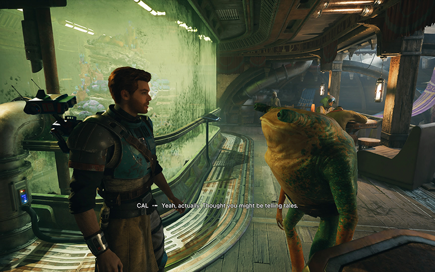 Ook hier is niet alles zo goed als we zouden willen. Heel vaak is er een merkbaar laden van objecten en texturen in het frame (soms zo merkbaar dat het grappig begint te worden). En er zijn ook genoeg niet-kritieke visuele bugs. Soms gaat een zwaard door Cal's pak, soms gaat een voorwerp een eigen leven leiden en begint hij als een gek te knipperen.