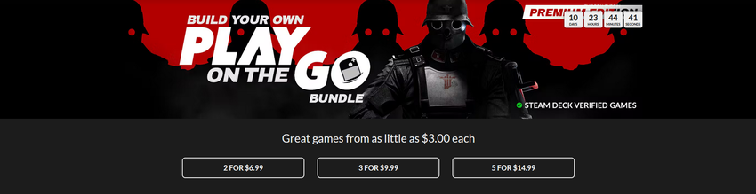 De Fanatical digitale winkel heeft een "Play on the Go" promotie, waarbij je je eigen set van 2, 3 of 5 games van verschillende genres kunt samenstellen die volledig compatibel zijn met Steam Deck.