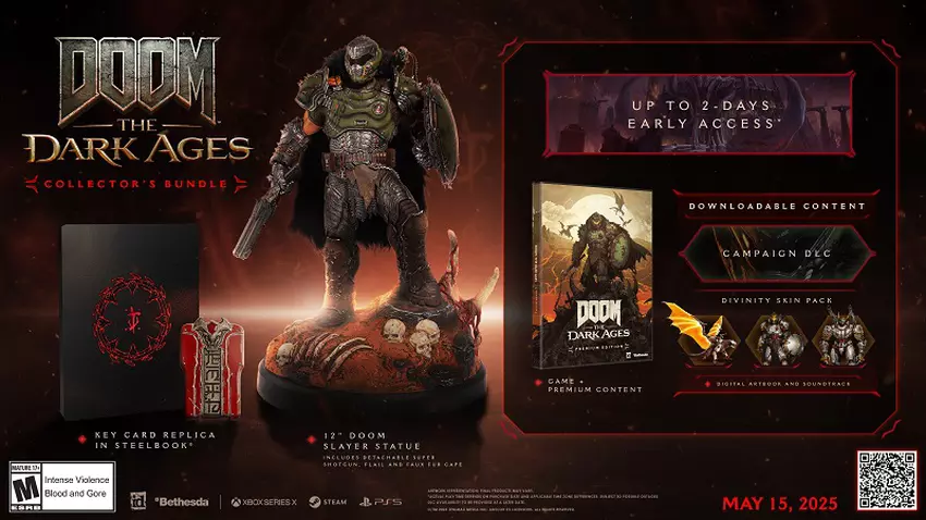 Doom: The Dark Ages Collector's Bundle kost $200 en bevat niet alleen alle Premium Edition-bonussen, inclusief 2-daagse early access, maar ook fysieke verzamelobjecten.