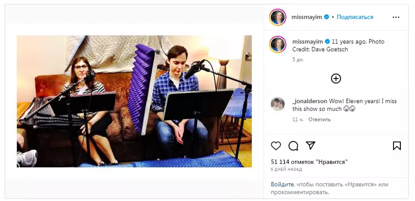Op de foto lijken Bialik en Parsons ADR-opnames te maken. In een commentaar onthulde de actrice dat de foto 11 jaar geleden werd genomen, wat, gebaseerd op Bialiks tijdlijn, waarschijnlijk gebeurde tijdens het filmen van het zesde seizoen van The Big Bang Theory, dat uitkwam in 2012 - 11 jaar geleden. Voor de context is het de moeite waard om te bedenken dat netwerkshows maanden voor de première van nieuwe seizoenen beginnen met filmen, om tijd te hebben om een paar afleveringen van tevoren te filmen en een hectisch werkschema te vermijden.