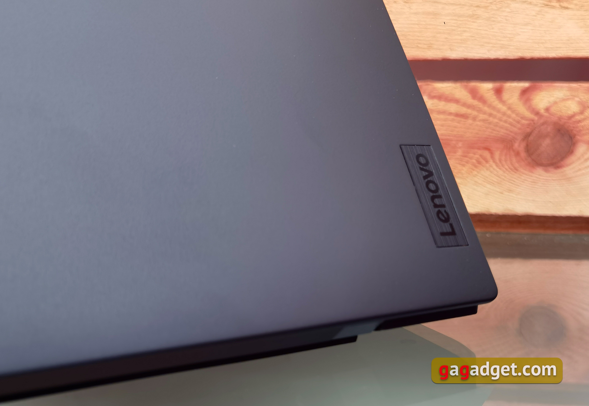 De behuizing is nog steeds gemaakt van magnesiumlegering en koolstofvezel. Dankzij deze materialen is de behuizing zeer duurzaam en licht. De laptop is verkrijgbaar in twee ontwerpopties: met een koolstofvezel textuur of een meer bekende zwarte deksel met een matte afwerking, die erg lijkt op Soft Touch. Wij hadden de laatste optie. Het oogt en voelt erg mooi, maar het verzamelt een beetje afdrukken. Er is een klein Lenovo-logo in de rechterbenedenhoek van de bovenklep en een ThinkPad-logo met een rode LED-indicator linksboven.