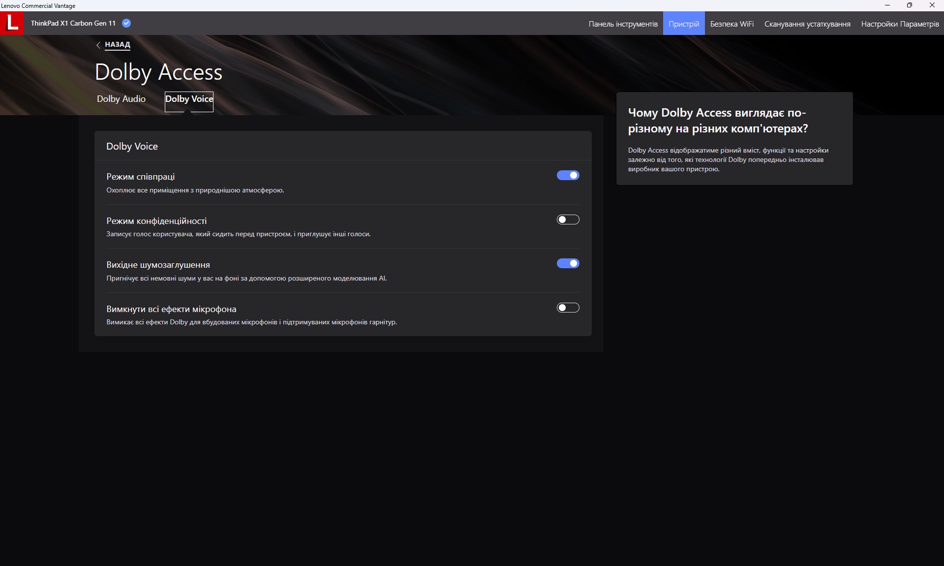 Er is ook een aparte Dolby-app voor audio- en microfooninstellingen: