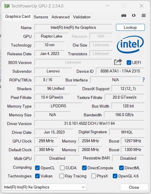 | Processor. | Intel Core i7-1365U (Raptor Lake, Intel 7), 10 cores (2P+8E), 12 threads, 1,9-5,2 GHz |