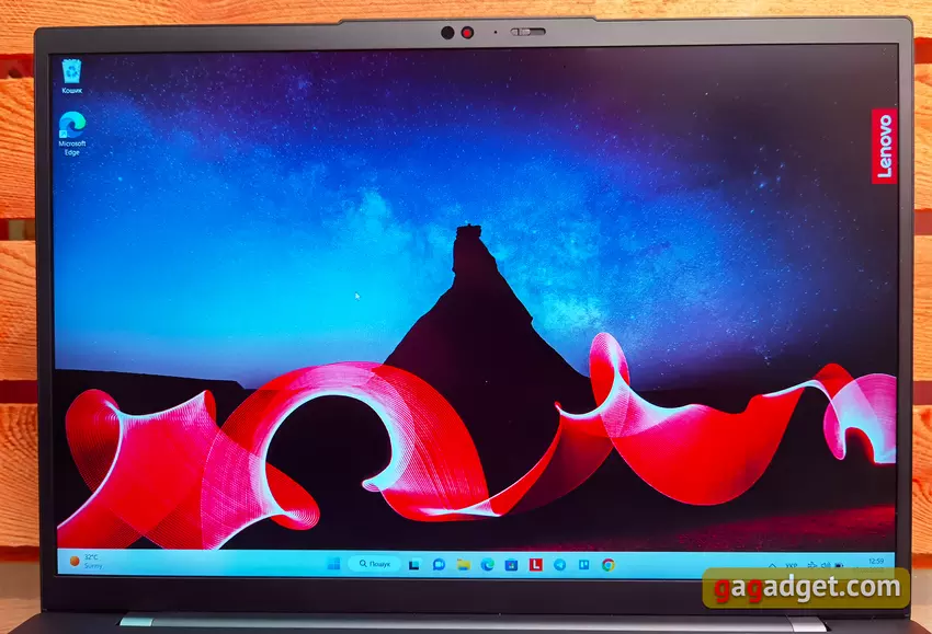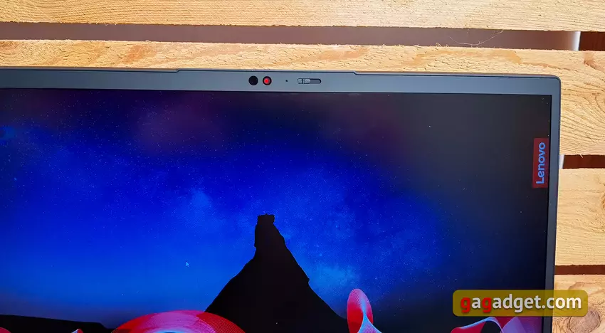 De randen rond het scherm zijn vrij dun. De webcammodule zit op de gebruikelijke plek. Hij heeft een FullHD-resolutie en is uitgerust met een fysieke sluiter. Ernaast zit een indicator voor de werking en een infrarood camera die wordt gebruikt om de eigenaar van de laptop te identificeren.