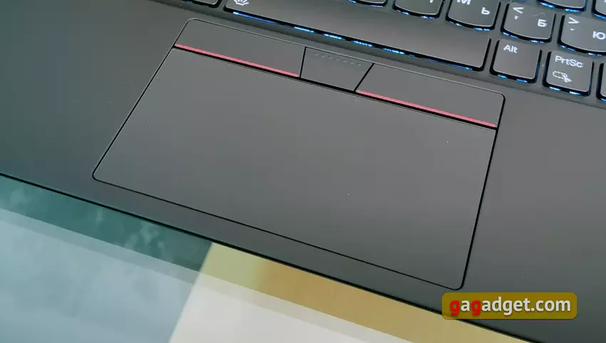 Het touchpad is niet erg groot: het is 110 mm breed. Het is van glas, met een aangenaam oppervlak en een uitstekende gevoeligheid. Het is voldoende voor de meeste taken en er is geen kritische behoefte aan een muis. Boven het touchpad zitten drie extra knoppen voor gebruik met het trackpoint.