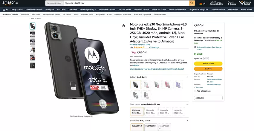Motorola Edge 30 Neo op Amazon: 120Hz POLED-scherm, Snapdragon 695-chip en 64 MP camera voor 20 euro korting
