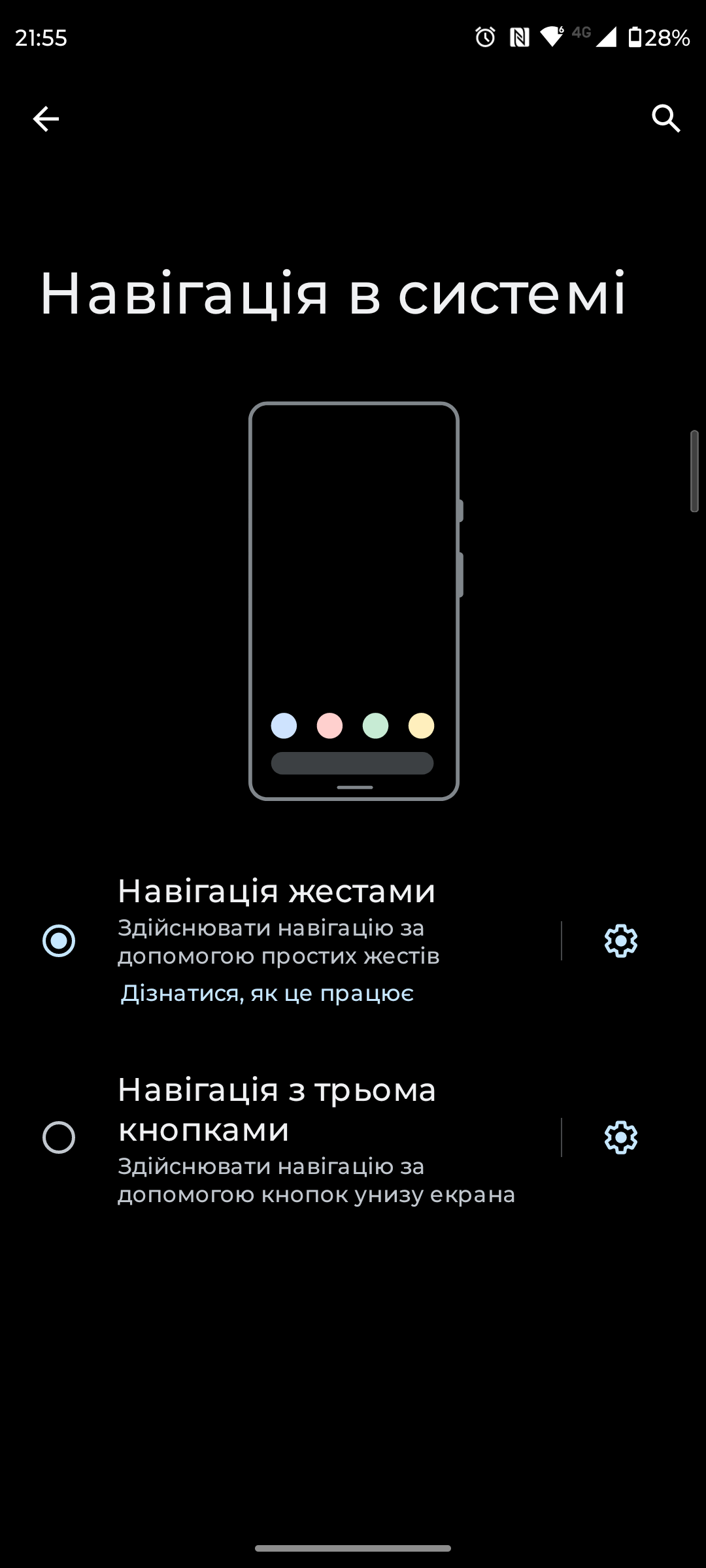 De opties om door het systeem te navigeren zijn standaard: gebaren of knoppen. Daarnaast is er een set bewegingen voor het activeren of deactiveren van het scherm, bediening met één hand en split-screen bediening, evenals een zijbalk met een set van de meest gebruikte applicaties.