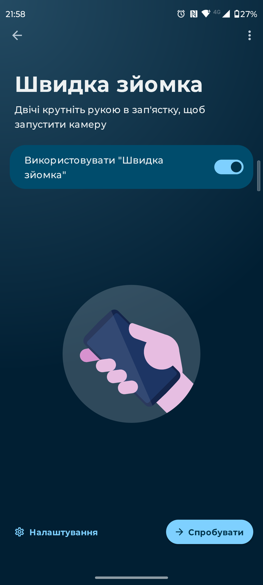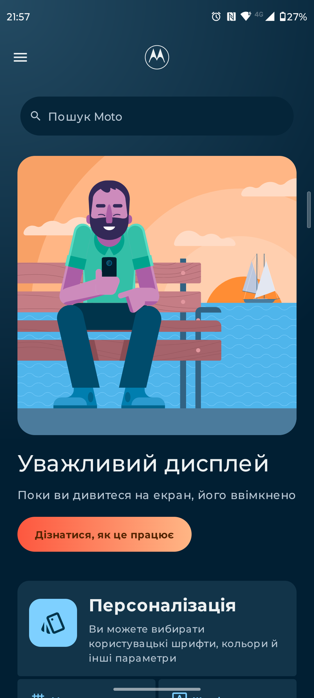 Alle extra functies van Motorola zijn verzameld in een aparte Moto-applicatie. Dit omvat personalisatie (die we al vermeld hebben), snelle flitser- en cameragearen, extra displayfuncties, een veilige map, enz.