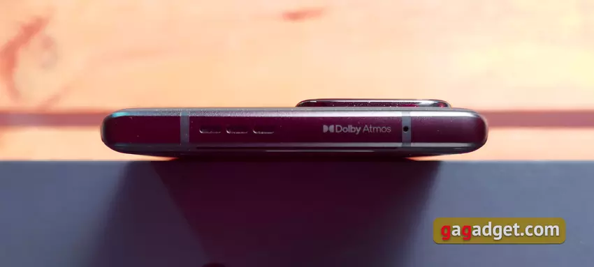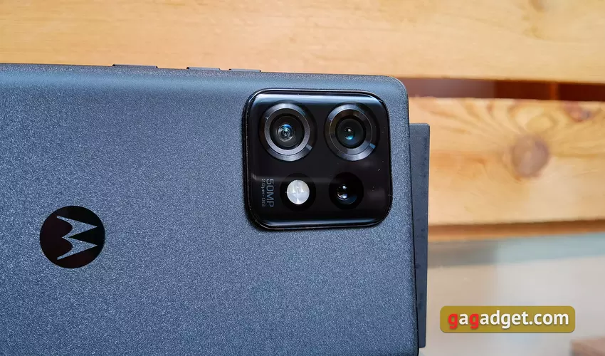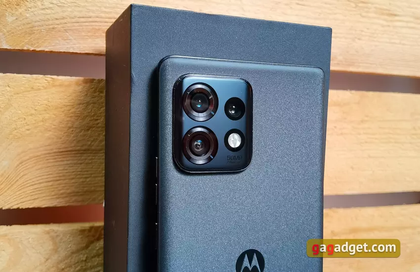 Het is moeilijk om de voorkant van een moderne smartphone er origineel uit te laten zien. Maar met de achterkant kan wel geëxperimenteerd worden. De achterkant van de Motorola Edge 40 Pro is gemaakt van mat glas, maar heeft een ongebruikelijke afwerking. Het voelt aangenaam en zijdezacht aan en schittert een beetje onder bepaalde hoeken. Wat de praktische kant van de zaak betreft, zijn er zowel voor- als nadelen. Het matglas verzamelt helemaal geen afdrukken en het deksel verliest zijn esthetische uiterlijk niet. Maar de coating is een beetje glad.
