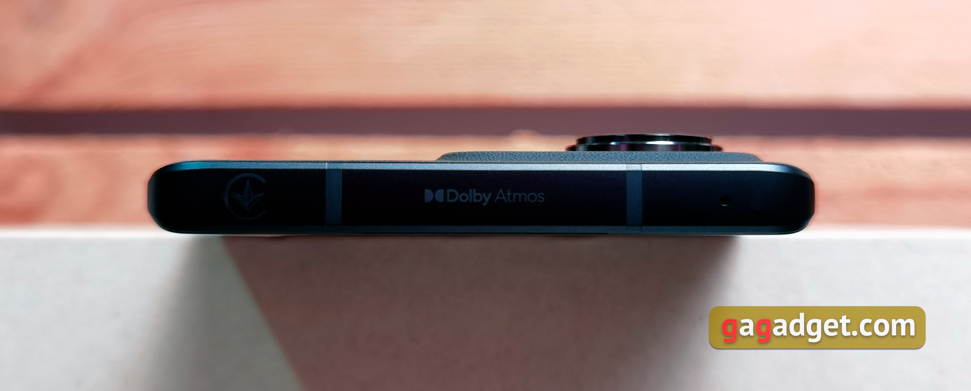 Aan de bovenkant van de Motorola Edge 40 bevindt zich slechts één van de microfoons en een Dolby Audio markering: