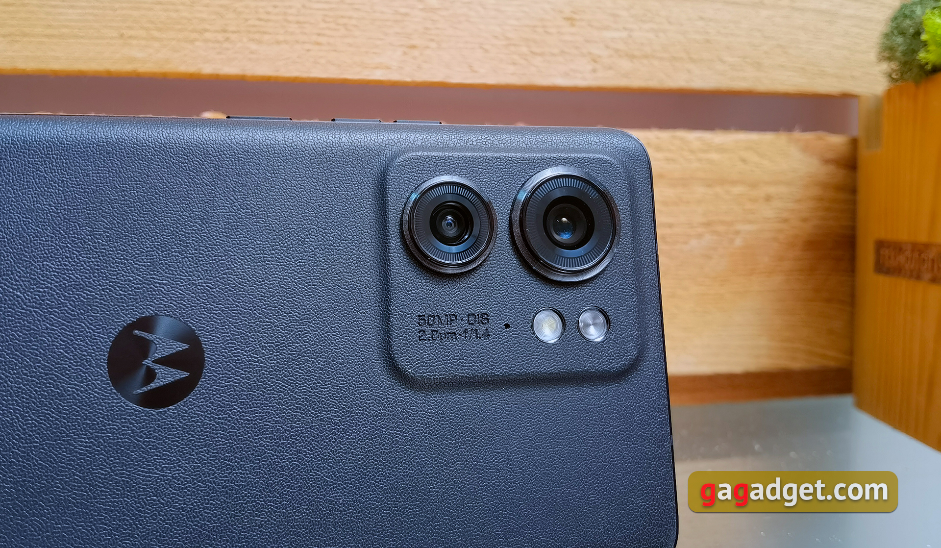 De camera aan de achterkant bevat twee modules, terwijl de meeste concurrenten er meestal drie hebben, en soms zelfs vier. Maar bij de Motorola Edge 40 is de situatie een beetje anders, het bedrijf besloot geen macrocamera en 2 MP dieptesensoren te installeren die niet erg bruikbaar zijn. In plaats daarvan zijn er twee echt nuttige modules overgebleven. De belangrijkste heeft 50 megapixels, f/1.4 diafragma, 1/1.55" matrixgrootte, 1.0µm pixels met multidirectionele PDAF-fasedetectie en optische stabilisatie. En de tweede is een ultragroothoekcamera met 13 MP, f/2.2, 120˚, 1.12µm. In tegenstelling tot de meeste concurrenten heeft deze camera autofocus en is ook ontworpen voor macro. De smartphone kan video's opnemen in 4K@30fps, FullHD@30/60/120fps. De camera aan de voorkant is 32 MP, f/2.4, 0.7µm.