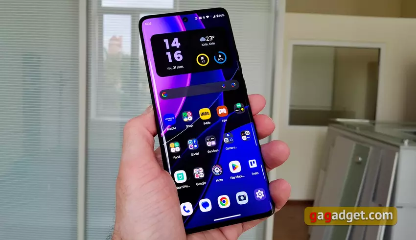Motorola Edge 40 draait op bijna pure Android 13 zonder noemenswaardige storingen. Het werkt erg snel, zonder bugs of glitches. De interface heeft een vertrouwde structuur: desktops, widgets, een apart menu met alle applicaties, een gordijn met grote schakelaars. Er zijn veel aanpassingsmogelijkheden: kleurenschema's, lettertype, raster, achtergrond, etc.