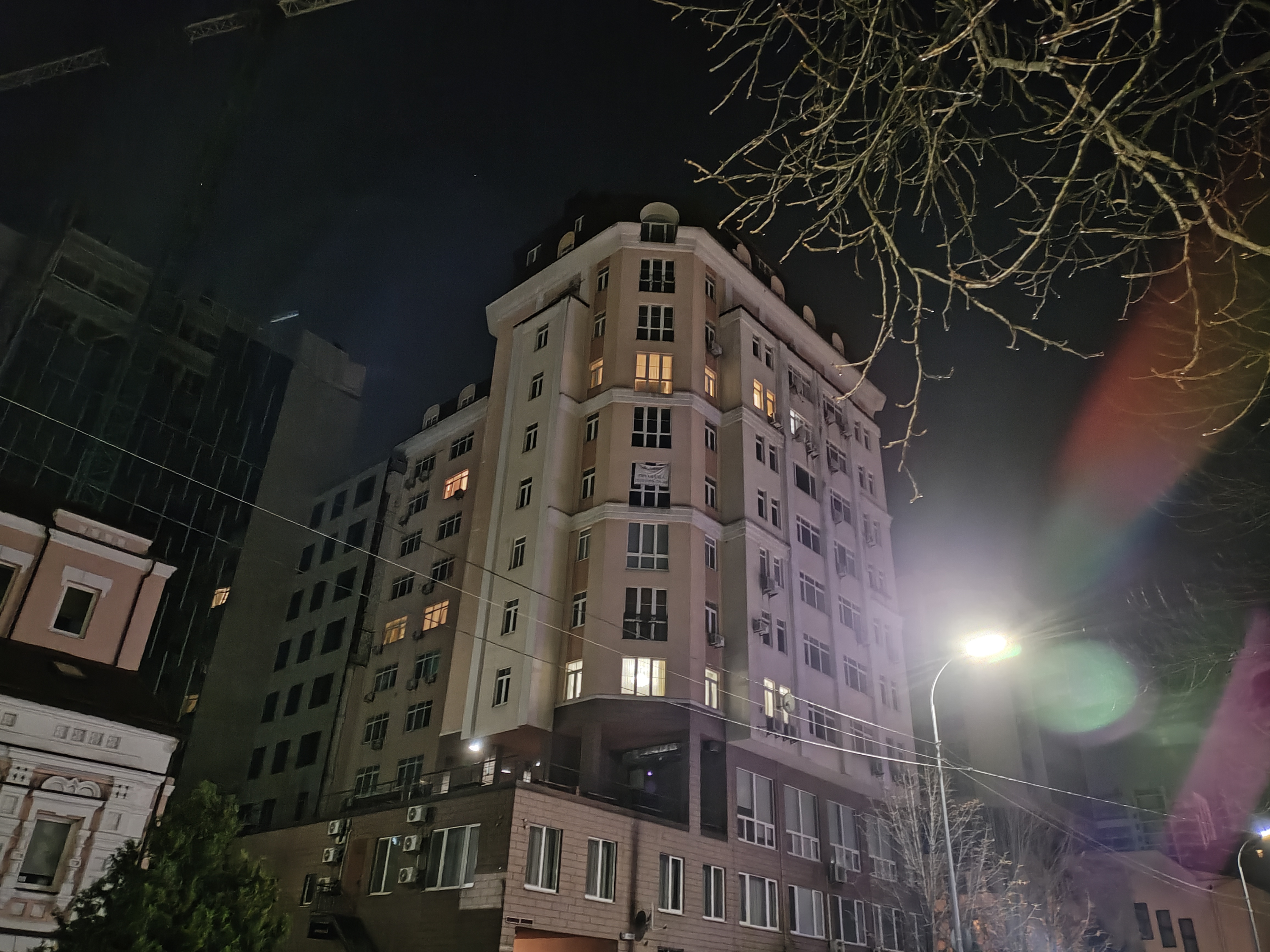 De ultragroothoekcamera doet het natuurlijk iets slechter. S Avonds worden artefacten, ruis en minimale onscherpte enigszins merkbaar, vooral aan de randen van het frame.
