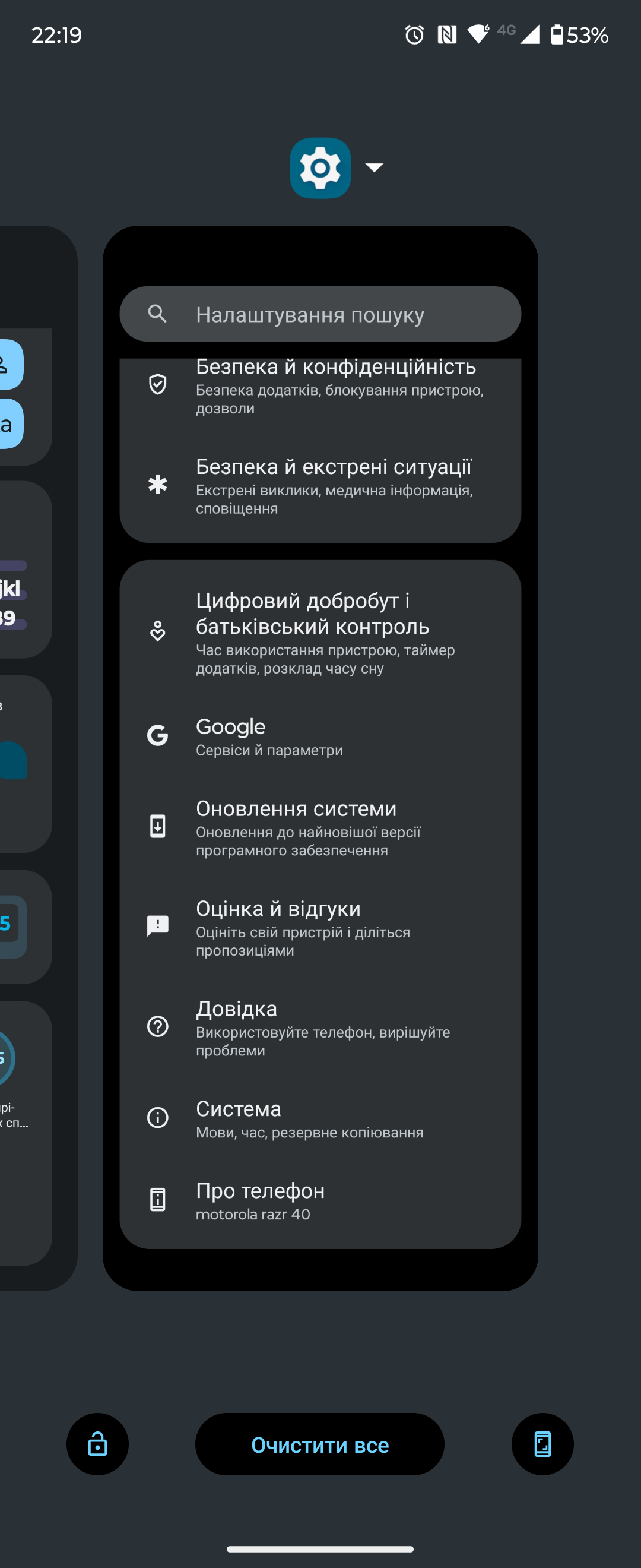Motorola Razr 40 draait op bijna pure Android 13, net als alle andere modellen van het bedrijf. Er zijn de externe display-instellingen die we hierboven beschreven en extra Moto-functies. Maar over het algemeen is het een vertrouwd Android met bureaubladen, een apart menu met alle apps, een scherm met grote schakelaars en een heleboel aanpassingsopties. De schil is snel en stabiel, alles is eenvoudig en duidelijk. Een van de vreemde dingen die we in andere Motorola-modellen hebben gezien, is de vreemde werking van lijsten in applicaties van derden: soms zijn er frameopeningen. Dit is niet het geval in de standaard apps.