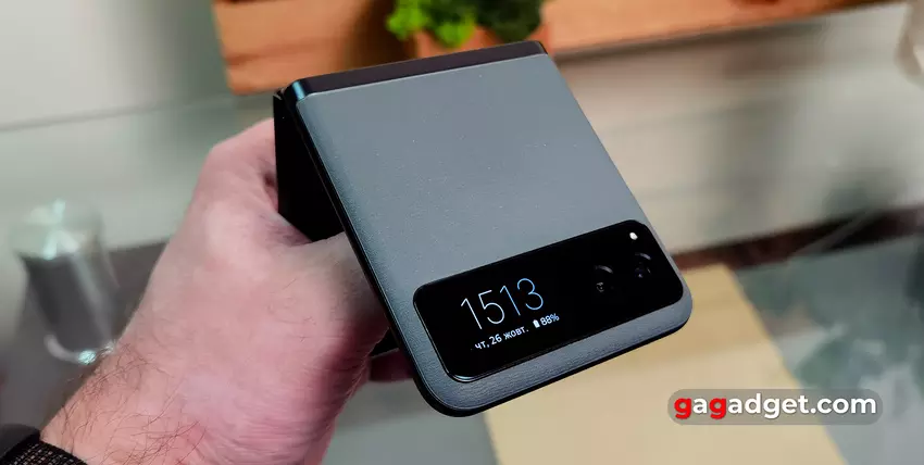 Alle andere functies van het gebruik van een smartphone met deze vormfactor zijn al bekend. Dit is de mogelijkheid om foto's en video's te maken in een halfgevouwen positie door de smartphone ergens neer te leggen. Dat wil zeggen, er is geen statief nodig en een zelfportret wordt gemaakt met een gebaar.