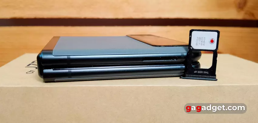 Het frame van de smartphone is gemaakt van aluminium uit de 7000-serie en heeft een mat oppervlak. In gesloten toestand zijn de helften stevig op elkaar geperst, zonder spleten. Functionele elementen zitten op dezelfde plaatsen als in het oudere model. Aan de rechterkant van de smartphone zit een van de extra microfoons, aparte volumeknoppen en een grote aan/uit-knop, die ook een vingerafdrukscanner is. Je zult moeten wennen aan de plaatsing van de knoppen, zoals in alle clamshells: ze zijn iets hoger geplaatst dan in conventionele smartphones.