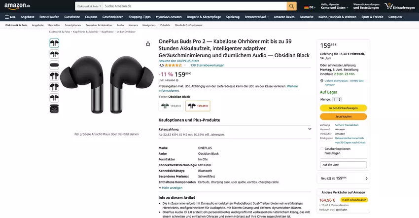 We hebben het over de OnePlus Buds Pro 2. Ze zijn momenteel te koop voor check price on amazon. De koptelefoon is verkrijgbaar in twee kleuren: Arbor Green en Obsidian Black.