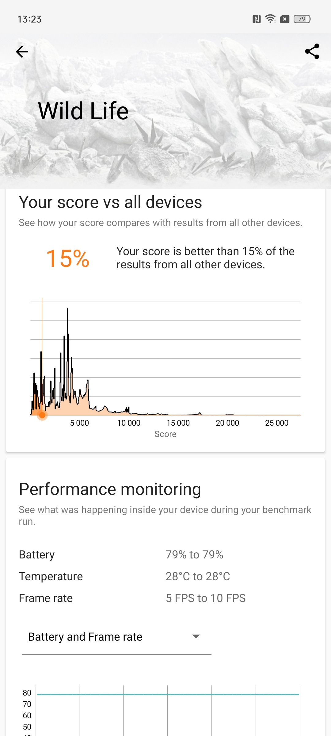 Aan de andere kant werkt de smartphone stabiel, de behuizing wordt niet heet tijdens gebruik. En de CPU Throttling Test toonde aan dat onder langdurige maximale belasting de prestaties tot 90% kunnen dalen, wat een vrij goede indicator is.