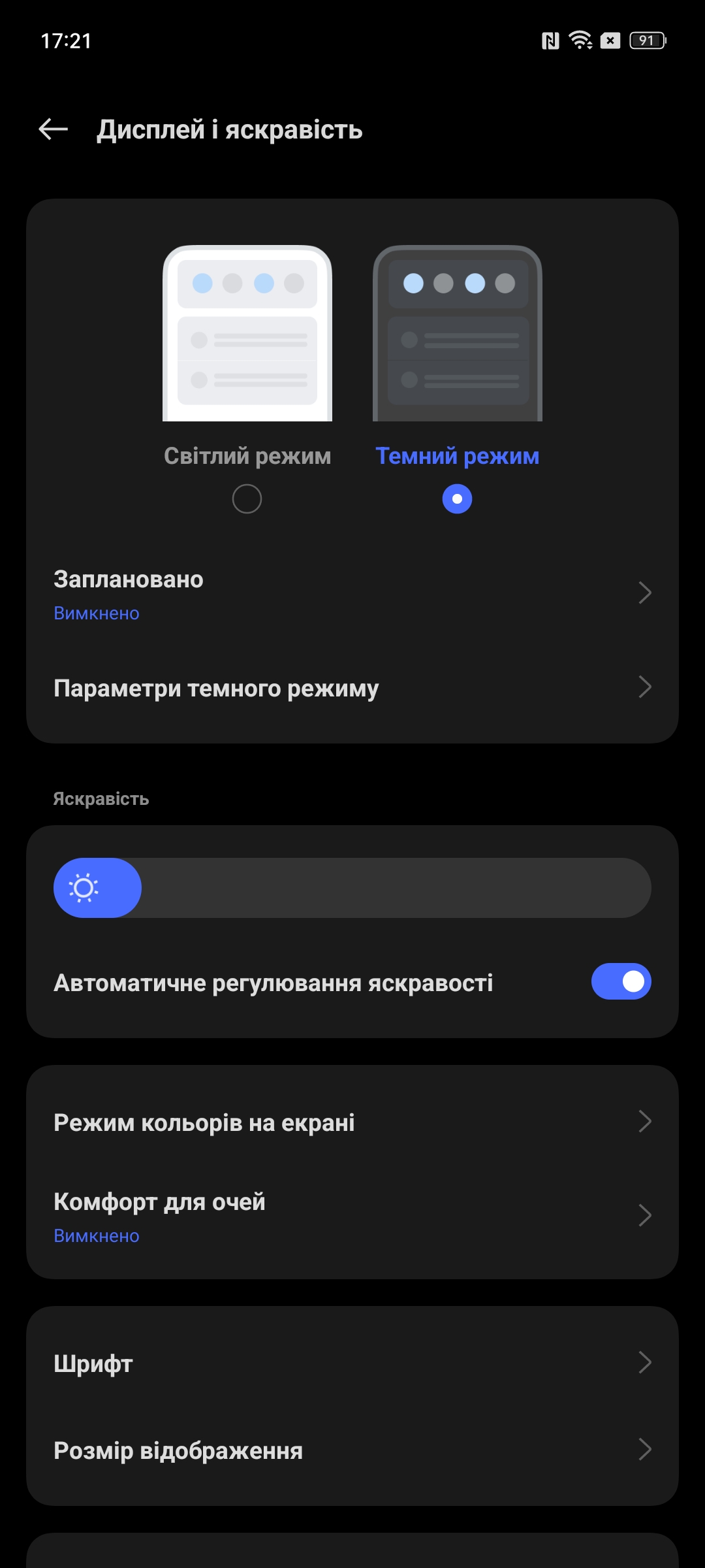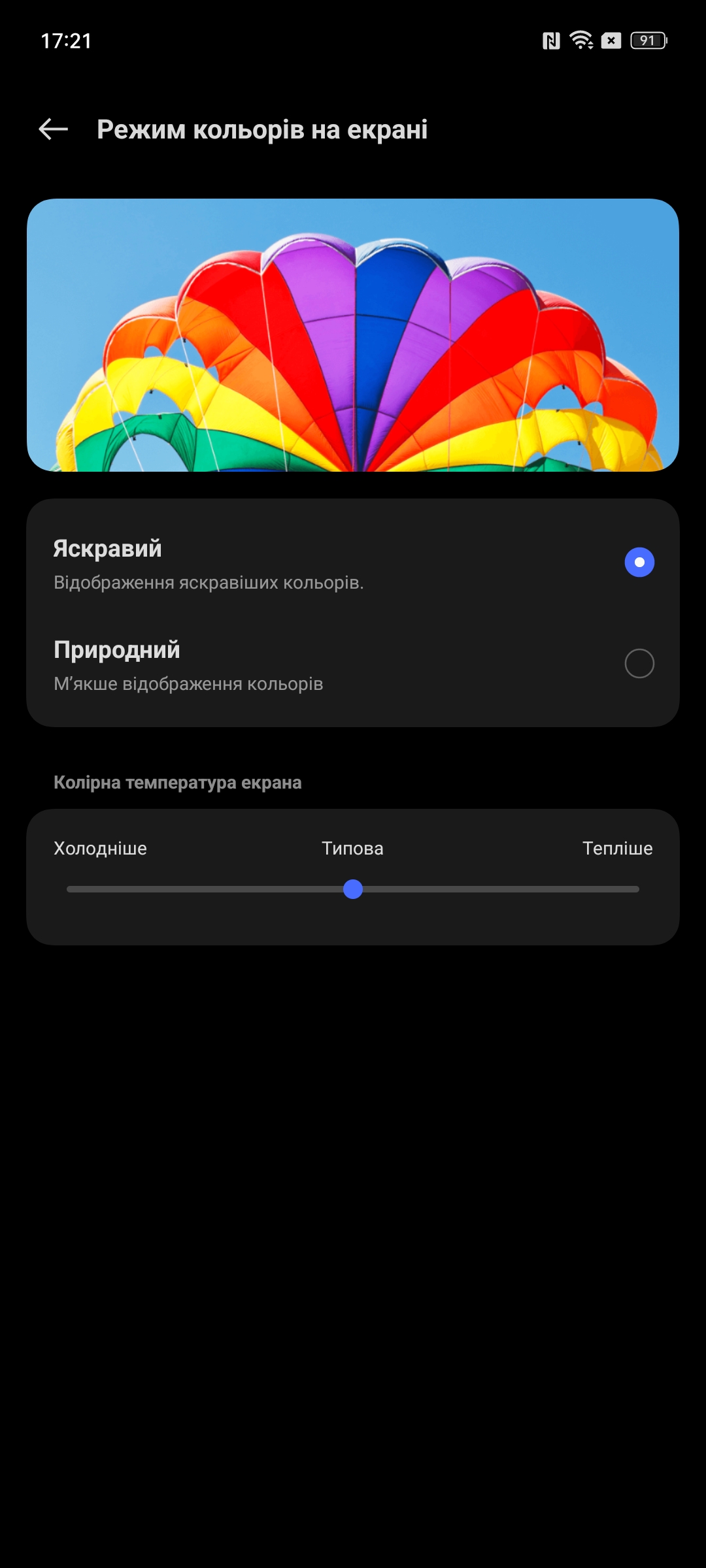 OPPO A98 maakt gebruik van een IPS-scherm (LTPS om precies te zijn) met een diagonaal van 6,72 inch, een resolutie van 2400x1080 en een beeldverhouding van 20:9. De pixeldichtheid is 391 pp. De pixeldichtheid is 391 ppi. De vernieuwingsfrequentie is 120 Hz en de leesfrequentie van de sensor is 240 Hz. Ze beloven 100% dekking van de DCI-P3 kleurruimte en een piekhelderheid in automatische modus bij direct zonlicht van 680 cd/m². De set instellingen is standaard voor moderne smartphones: donkere en lichte thema's, verversingssnelheid, oogcomfortmodus, lettertype, schaal van interface-elementen en modi voor kleurweergave. Er is een heldere en natuurlijke modus met de mogelijkheid om de kleurtemperatuur handmatig aan te passen.