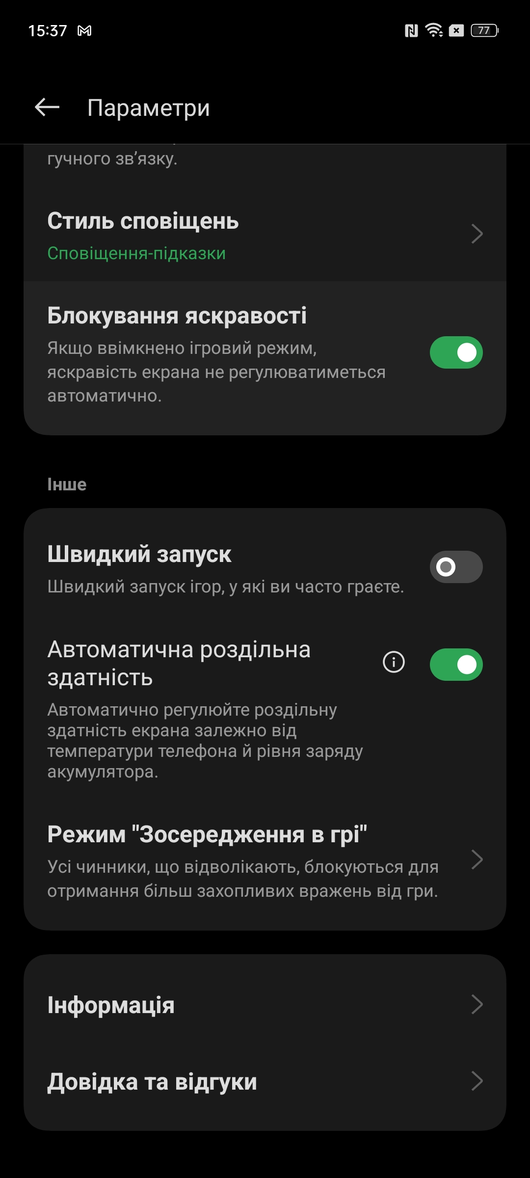 Natuurlijk heeft de OPPO A98, net als alle moderne smartphones, een applicatie voor liefhebbers van mobiele games met een heleboel instellingen. Beginnend met het uitschakelen van meldingen tijdens het spelen en eindigend met een game overlay met systeembelasting en FPS-indicatoren. Moderne games op een smartphone werken, maar je moet niet de beste graphics verwachten. Genshin Impact op de minimale instellingen draait op een framerate van ongeveer 40 FPS. Call of Duty Mobile - 60 FPS op hoge instellingen. Diablo Immortal - ongeveer 30 FPS.