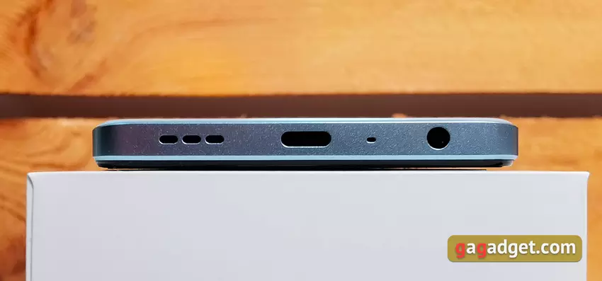Daaronder zit de hoofdluidspreker, een USB Type-C-aansluiting, een microfoon voor het oortje en een standaard 3,5 mm hoofdtelefoonaansluiting, wat vrij ongebruikelijk is voor moderne smartphones.