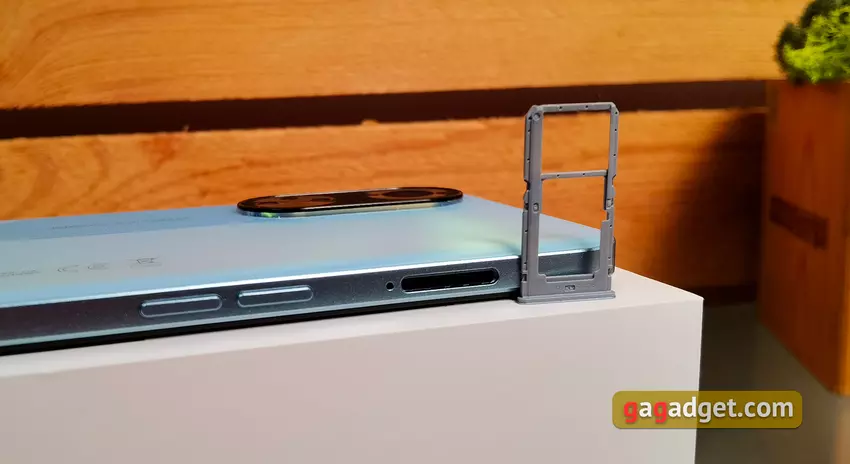 Deze is hybride en ondersteunt dual-SIM. In plaats van de tweede kun je een MicroSD-kaart met een capaciteit tot 1 TB installeren voor het geval de 256 GB aan ingebouwde opslagruimte niet genoeg is.