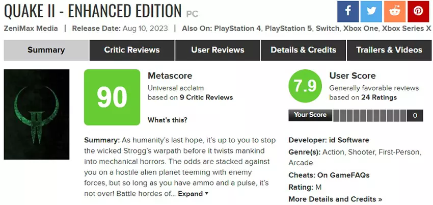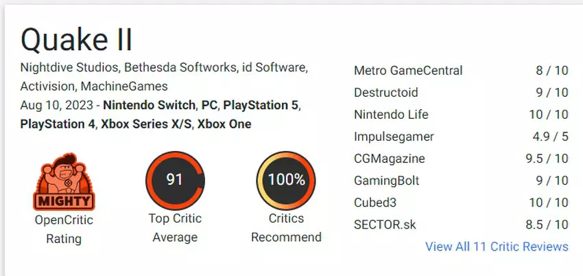 De geüpdatete versie van Quake 2, waar de beroemde Nightdive studio (de maker van de System Shock remake) aan heeft gewerkt, is warm ontvangen door gamers en critici en krijgt uitstekende cijfers op alle platforms.