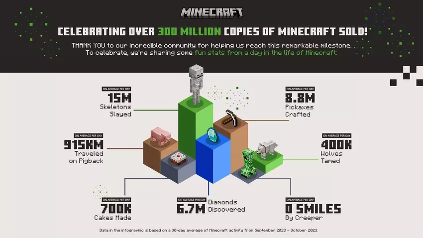 Na de presentatie van Minecraft Live 2023, waar de ontwikkelaars spraken over de updates van de game, werd bekend dat er meer dan 300 miljoen exemplaren van Minecraft zijn verkocht sinds de eerste versie uitkwam in 2009.
