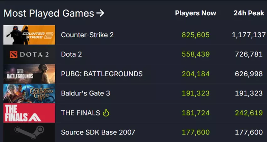 Op het moment van schrijven neemt The Finals de vijfde plaats in door het aantal gebruikers in het spel. Natuurlijk is de nieuwe shooter nog ver verwijderd van de indicatoren van online games als Counter-Strike 2 en Dota 2, maar het heeft alle kansen om PUBG in de nabije toekomst in te halen.