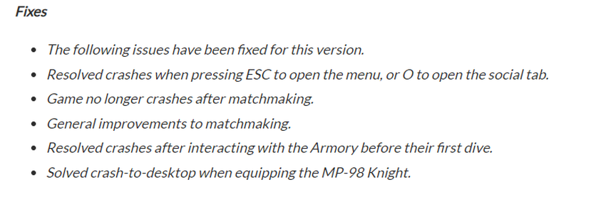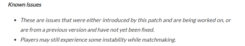 In een verklaring bij de update verzekeren de ontwikkelaars dat dit slechts de eerste stap is naar het oplossen van de problemen in de game, vooral als het gaat om matchmaking, omdat ze meer tijd nodig hebben om de problemen volledig op te lossen: