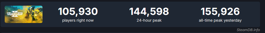 Zoals we al eerder schreven, werd Helldivers 2 de meest succesvolle release van Sony op het platform van Valve ooit - het piek online bereik van de game bereikte 82 duizend mensen, maar volgens de SteamDB-database is het huidige maximum aantal online spelers 155.926.