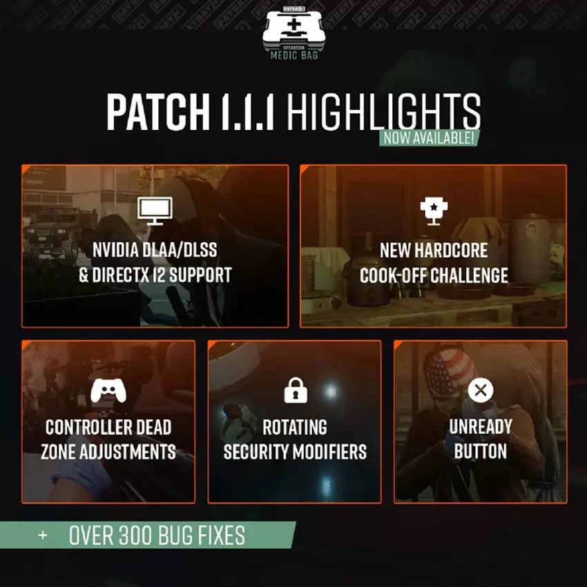 Daarnaast heeft Starbreeze nieuwe functies en mogelijkheden toegevoegd aan Payday 3. Spelers kunnen nu bijvoorbeeld in de lobby aangeven dat ze niet klaar zijn voor het begin van de wedstrijd en de dode zone op de gamepad-sticks aanpassen.