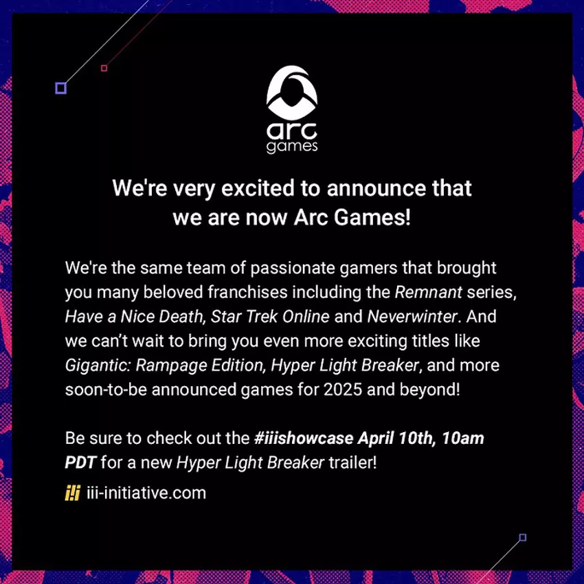Arc Games bezit nog steeds de rechten op Remnant, Homeworld 3, Neverwinter, Star Trek Online, Hyper Light Breaker, Have a Nice Death en een aantal andere projecten, terwijl de beroemde Borderlands-shooterserie nu eigendom is van Take-Two Interactive.