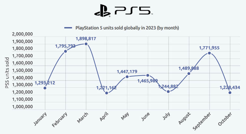De meeste consoles werden gekocht in maart - 1.898.817 stuks. In april waren er de minste verkopen - 1.221.162. Als we echter naar de hele infographic kijken, worden er gemiddeld 285.718 consoles verkocht in een week, 40.705 per dag en 1.696 per uur. En aangezien de kerstvakantie en de lancering van de PlayStation 5 Slim eraan komen, zal dit aantal alleen maar toenemen.
