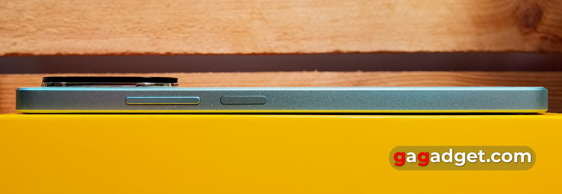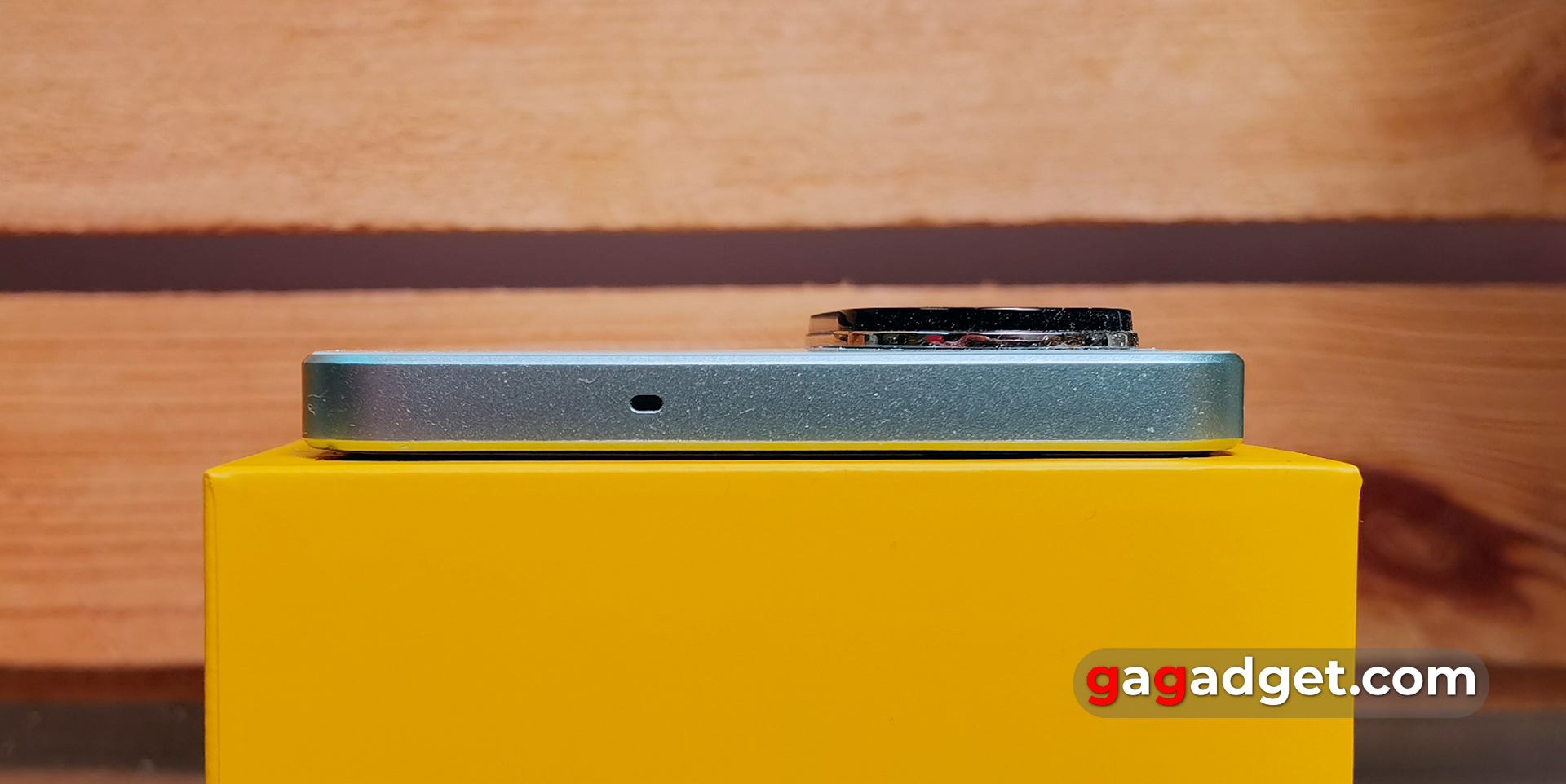 realme C67 is een typische vertegenwoordiger van moderne, goedkope Android smartphones met een groot scherm, dus het voorpaneel is niets bijzonders. De randen rond het scherm zijn vrij dun, zeker gezien het gebruik van IPS-display. Het beschermende glas is plat, de camera aan de voorkant zit in een standaard rond gat. Hierboven zit de luidspreker voor het oortje.
