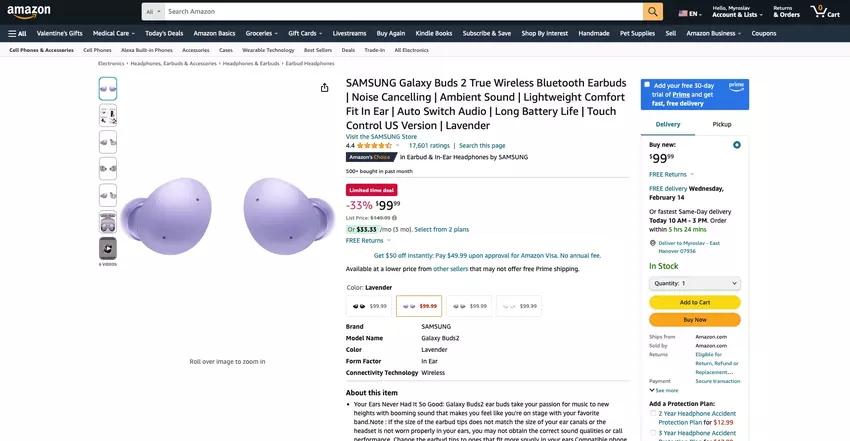 Samsung Galaxy Buds 2 op Amazon: Echt draadloos, met ANC, IPX2-bescherming en een batterijlevensduur tot 29 uur voor $99 ($50 korting)