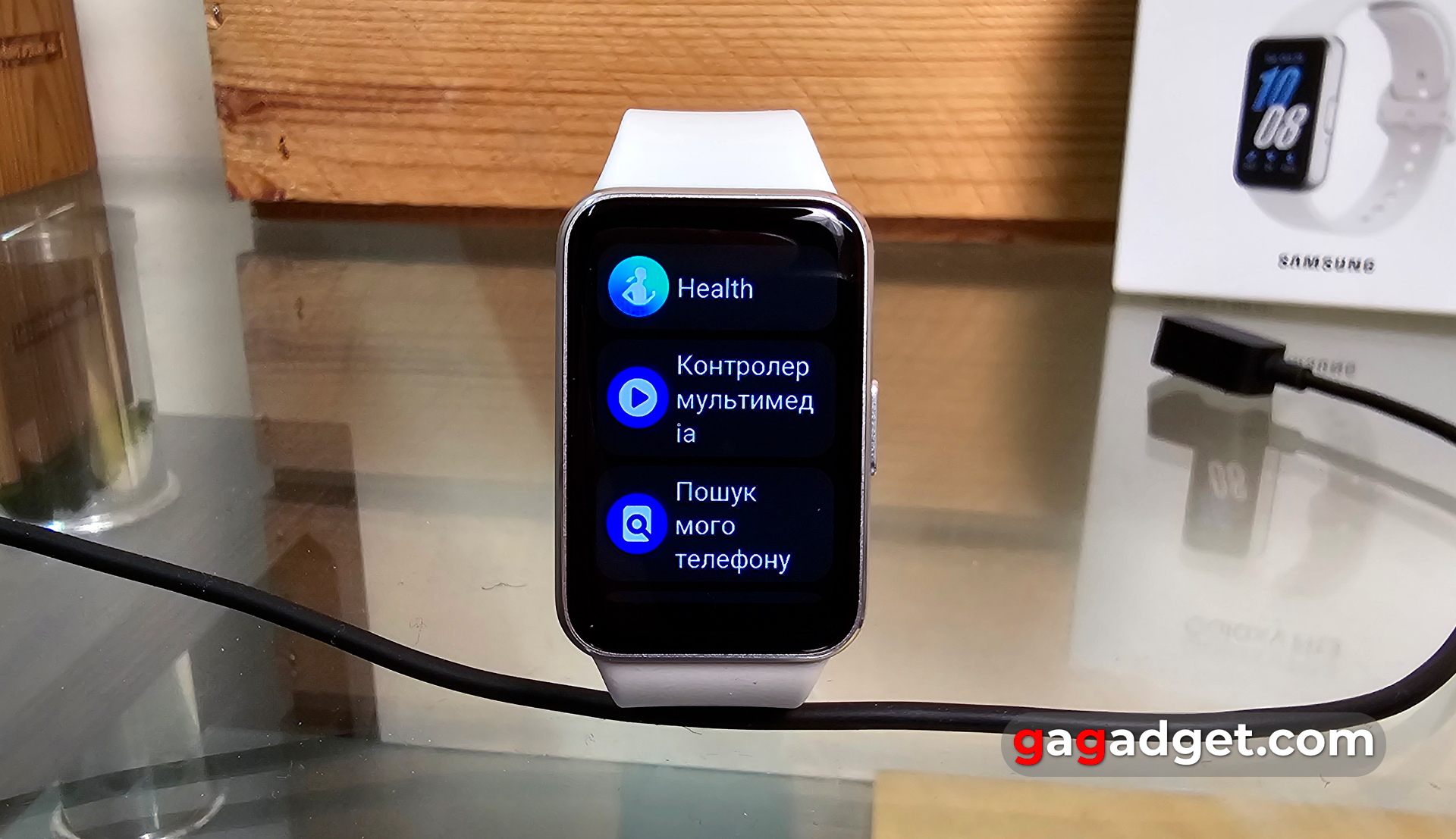 Het is goed om te onthouden dat de Samsung Galaxy Fit3 geen smartwatch is, maar een fitnessarmband met vrij beperkte functionaliteit en zonder de mogelijkheid om applicaties van derden te installeren. De armband draait op FreeRTOS, de Samsung processor is niet gespecificeerd, maar het apparaat heeft 16 MB RAM en 256 MB intern geheugen. Daarom is er geen mogelijkheid om muziek te downloaden voor training. Maar het besturingssysteem zelf is erg snel en verrassend soepel. De set sensoren bestaat uit een versnellingsmeter, barometer, gyroscoop, optische hartslagsensor en lichtsensor, d.w.z. de basisset die nodig is voor een moderne fitnesstracker. Wat draadloze interfaces betreft, is er alleen Bluetooth 5.3 voor verbinding met een smartphone. Samsung Galaxy Fit3 heeft geen eigen GPS-module, dus de locatie wordt bepaald door de smartphone voor looproutes.