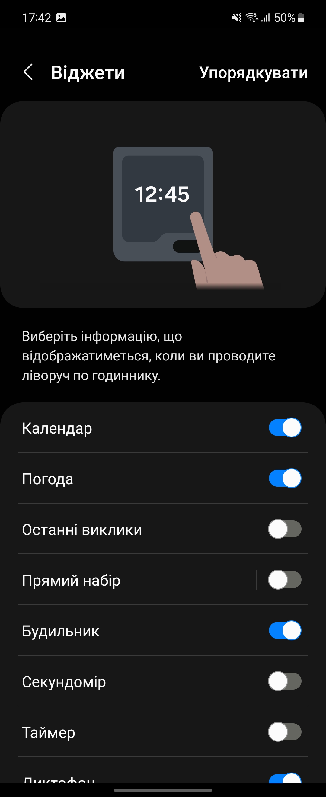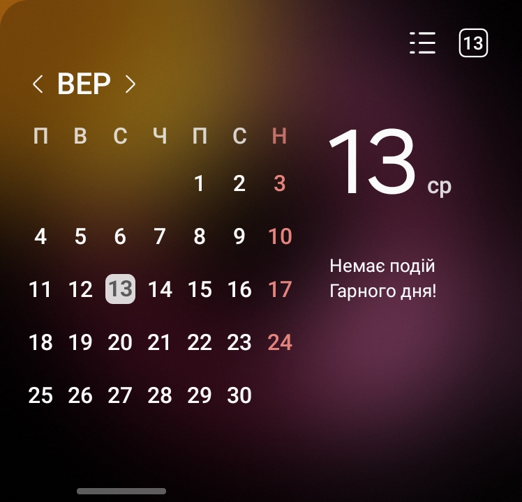 Er zijn nog niet veel widgets: weer, kalender, stopwatch, apps en nog een paar.