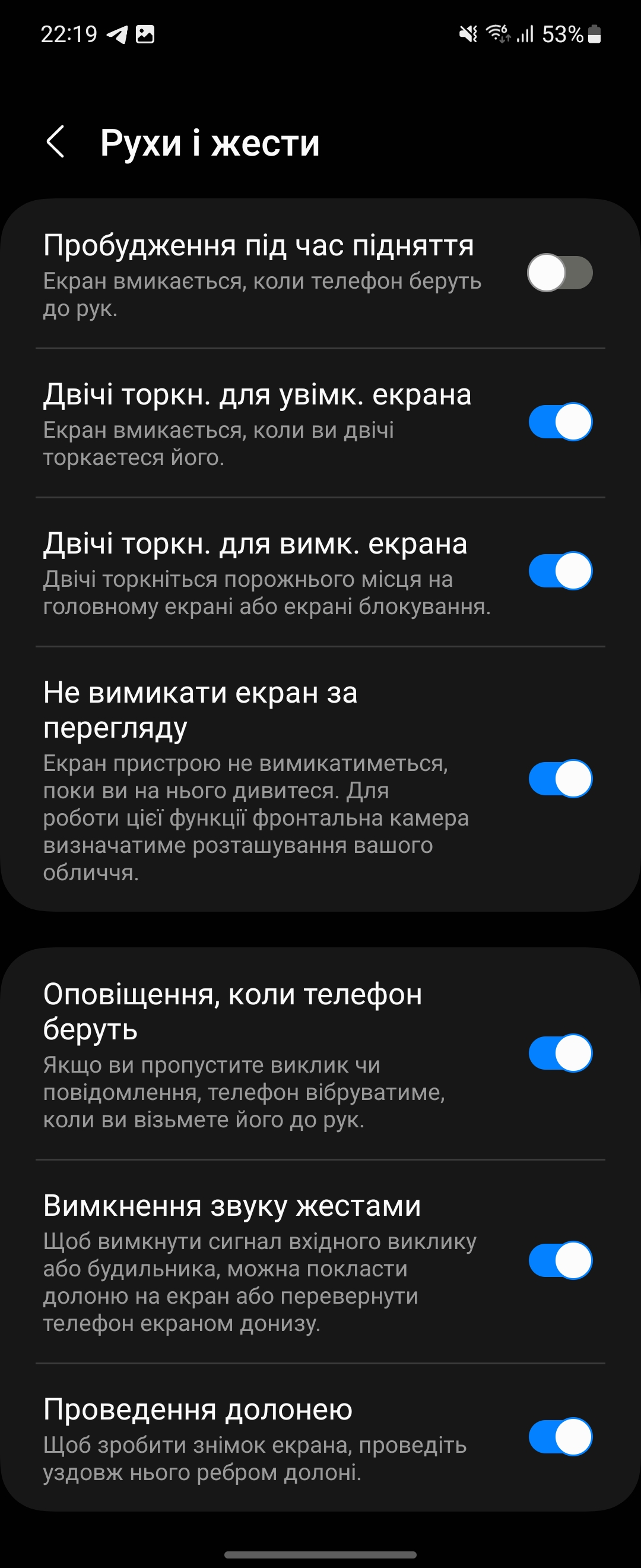 Er is navigatie met drie knoppen en navigatie met gebaren (standaard met bewegingen vanaf drie zijden van het scherm en een alternatief met bewegingen vanaf drie delen van de onderkant van het scherm). Er zijn de gebruikelijke extra bewegingen: wakker worden met een dubbele tik of door de smartphone op te tillen.