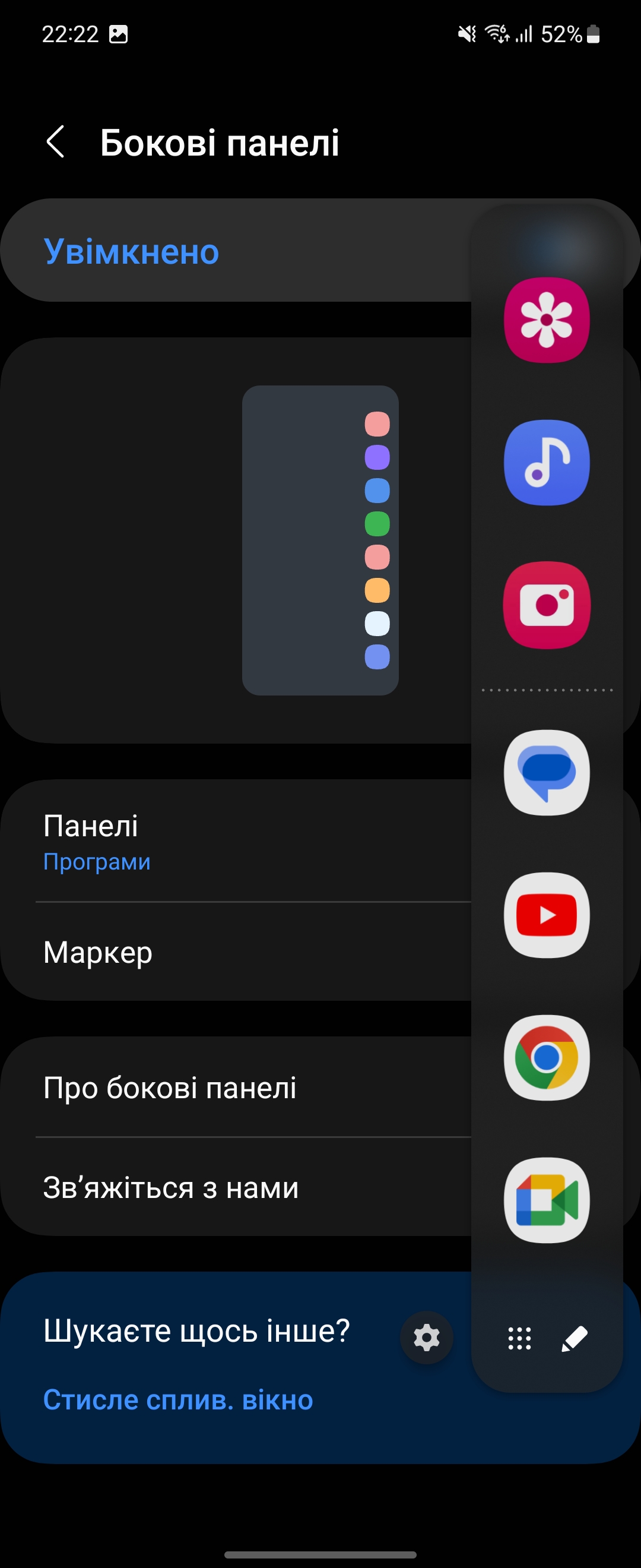 Er is ook een paneel voor de buigmodus beschikbaar. Als de smartphone gedeeltelijk gebogen is, wordt de applicatie zelf in de bovenste helft weergegeven en de bedieningselementen of het virtuele touchpad in sommige gevallen in de onderste helft.